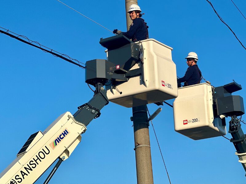 光ファイバー、光アクセス工事、LANケーブル配線や防犯カメラ設置といった弱電工事を主軸に、モバイル基地局工事まで、次世代の情報通信インフラを幅広く構築しています。お客様の多様なニーズに応える確かな技術力で、快適な情報社会の実現に貢献します。
